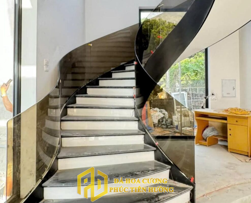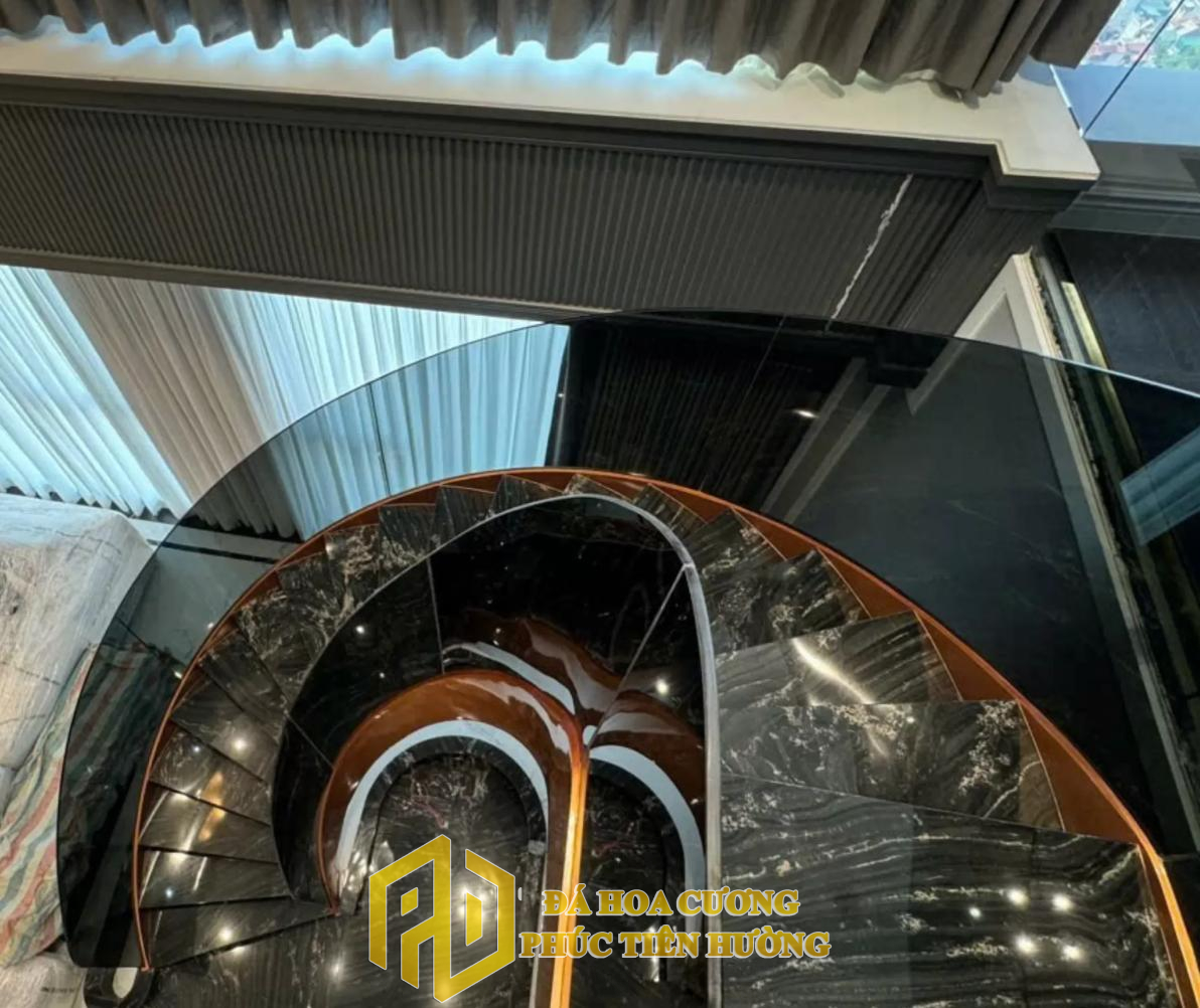 Cầu thang đá hoa cương mang lại vẻ đẹp sang trọng và hiện đại cho ngôi nhà. Các đường vân tự nhiên của đá giúp mỗi công trình đều có nét độc đáo riêng.