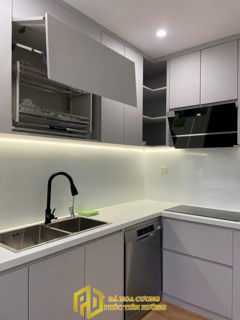 - Nâng tầm không gian: Mặt bếp bằng đá kết hợp với ánh sáng phù hợp sẽ tạo nên không gian ấm cúng, sang trọng, là nơi quây quần lý tưởng của các thành viên.